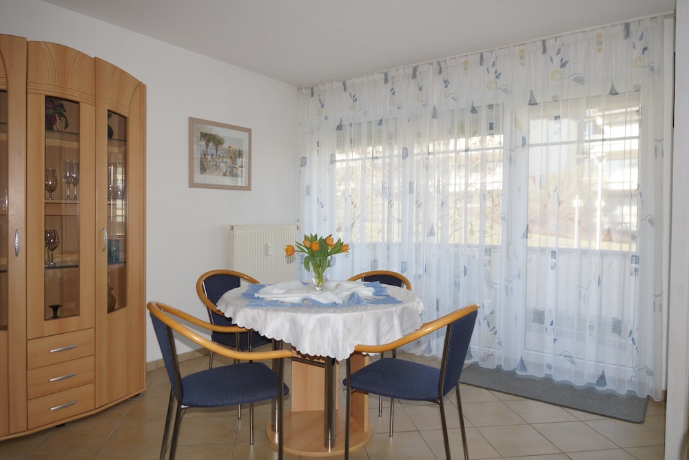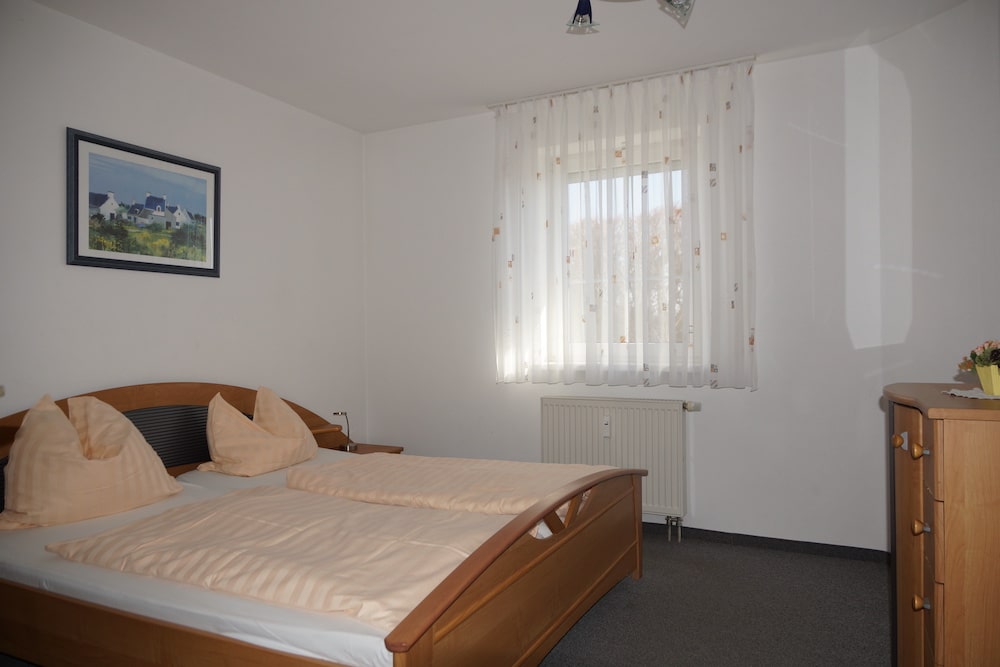 Unsere großzügig ausgestatteten Ferienwohnungen vom Typ 2 (61m2) befinden sich Haus Kurring 8 und haben einen Balkon mit Blick auf den Kurpark bzw. die Höhen des Thüringer Waldes.