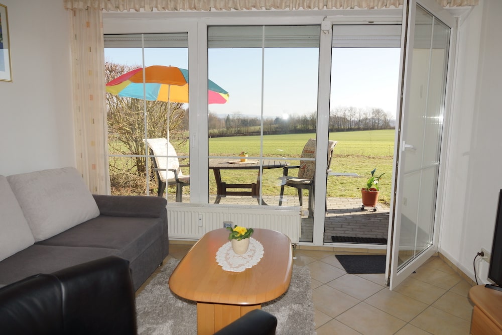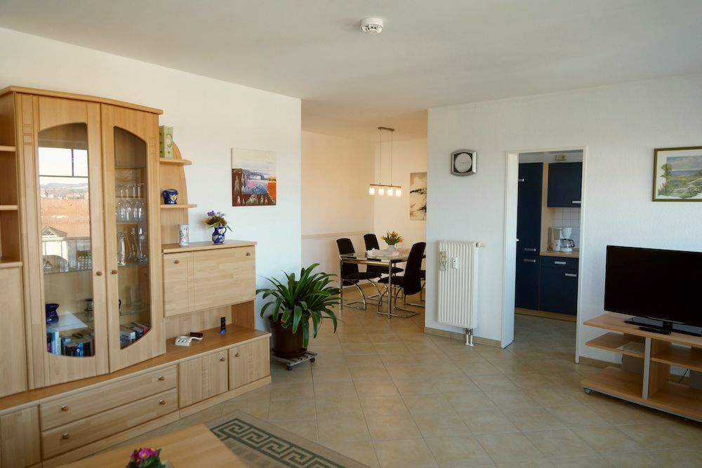 Unsere großzügig ausgestatteten Ferienwohnungen vom Typ 2 (61m2) befinden sich Haus Kurring 8 und haben einen Balkon mit Blick auf den Kurpark bzw. die Höhen des Thüringer Waldes.