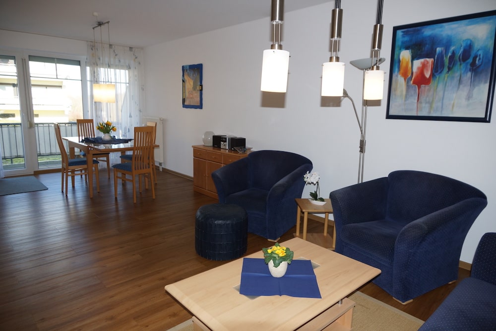 - Wohnbereich, Schlafzimmer, Küche, Bad mit Badewanne/Dusche, Balkon